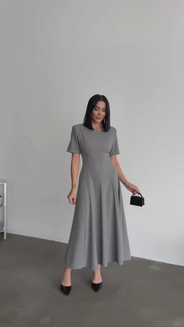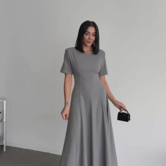 Mirelle Pleated Grey Midi Dress